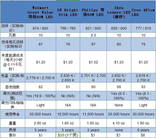 沃爾瑪廉價的LED燈泡是測試中等效60W燈泡中最明亮的之一,且在接近900流明時色溫更高,每個燈泡售價不到5美元,是目前經(jīng)濟(jì)實(shí)惠可調(diào)光LED燈泡的優(yōu)選。